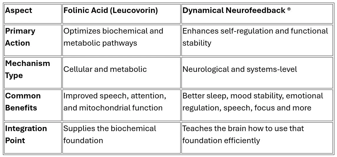 Folinic acid and Dynamical Neurofeedback® represent two sides of a powerful integrative framework.